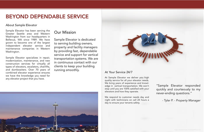 LSI Marketing offers a sales packet that is tailored specifically to fill the needs of elevator contractors. The sales packet enhances your image, credibility and immediately positions your company as a leader in your market. LSI Marketing brings years of experience and innovation marketing products and services in the elevator industry.